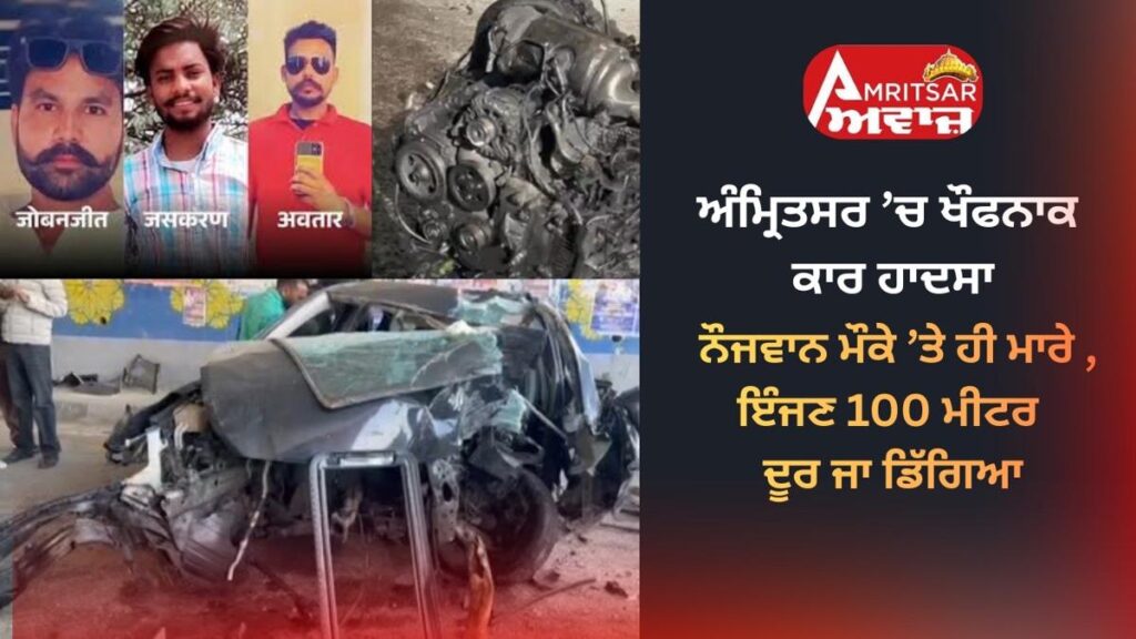 Amritsar Car Accident : ਹਾਦਸਾ ਇੰਨਾ ਭਿਆਨਕ ਸੀ ਕਿ ਕਾਰ ਦਾ ਇੰਜਣ ਵੱਖ ਹੋ ਗਿਆ ਅਤੇ ਲਗਭਗ 100 ਮੀਟਰ ਦੂਰ ਡਿੱਗ ਗਿਆ। ਪੁਲਿਸ ਨੇ ਪੁਸ਼ਟੀ ਕੀਤੀ ਹੈ ਕਿ ਹਾਦਸੇ ਵਿੱਚ ਤਿੰਨ ਲੋਕਾਂ ਦੀ ਮੌਤ ਹੋ ਗਈ ਹੈ। ਮੌਕੇ ‘ਤੇ ਮੌਜੂਦ ਪੁਲਿਸ ਮੁਲਾਜ਼ਮਾਂ ਨੇ ਦੱਸਿਆ ਕਿ ਕਾਰ ਵਿੱਚ ਸਵਾਰ ਚਾਰ ਨੌਜਵਾਨ ਲੋਪੋਕੇ ਪਿੰਡ ਤੋਂ ਆ ਰਹੇ ਸਨ।