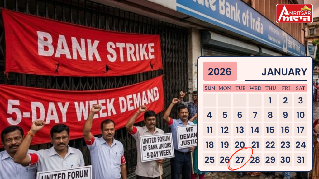 ਮੰਗਲਵਾਰ 27 ਜਨਵਰੀ ਨੂੰ ਬੈਂਕ ਕਰਮਚਾਰੀਆਂ ਦੀ ਹੜਤਾਲ ਹੈ। ਦੱਸ ਦੇਈਏ ਕਿ ‘ਯੂਨਾਈਟਿਡ ਫੋਰਮ ਆਫ ਬੈਂਕ ਯੂਨੀਅਨਜ਼’ (UFBU) ਨੇ ਹਫ਼ਤੇ ਵਿੱਚ 5 ਦਿਨ ਕੰਮ (5-Day Working Week) ਦੀ ਮੰਗ ਨੂੰ ਤੁਰੰਤ ਲਾਗੂ ਕਰਵਾਉਣ ਲਈ 27 ਜਨਵਰੀ ਨੂੰ ਦੇਸ਼ ਵਿਆਪੀ ਹੜਤਾਲ ‘ਤੇ ਜਾਣ ਦਾ ਫ਼ੈਸਲਾ ਕੀਤਾ ਹੈ। ਇਸ ਕਾਰਨ ਅੱਜ ਮੰਗਲਵਾਰ ਨੂੰ ਸਰਕਾਰੀ ਬੈਂਕਾਂ ਦਾ ਕੰਮਕਾਜ ਪ੍ਰਭਾਵਿਤ ਹੋਣ ਦਾ ਖ਼ਦਸ਼ਾ ਹੈ। ਅਧਿਕਾਰੀਆਂ ਅਤੇ ਕਰਮਚਾਰੀਆਂ ਦੀ ਪ੍ਰਤੀਨਿਧਤਾ ਕਰਨ ਵਾਲੀਆਂ ਨੌਂ ਜਥੇਬੰਦੀਆਂ ਦੀ ਸਾਂਝੀ ਸੰਸਥਾ UFBU ਵੱਲੋਂ ਹੜਤਾਲ ਦਾ ਇਹ ਸੱਦਾ 23 ਜਨਵਰੀ ਨੂੰ ਮੁੱਖ ਲੇਬਰ ਕਮਿਸ਼ਨਰ ਨਾਲ ਹੋਈ ਸੁਲ੍ਹਾ ਮੀਟਿੰਗ ਦੇ ਅਸਫ਼ਲ ਹੋਣ ਤੋਂ ਬਾਅਦ ਦਿੱਤਾ ਗਿਆ ਹੈ।