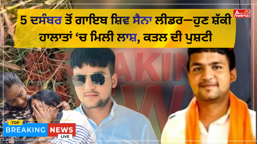 ਸ਼ਿਵ ਸੈਨਾ Punjab ਦੇ ਜ਼ਿਲ੍ਹਾ ਯੂਥ ਪ੍ਰਧਾਨ ਸ਼ਿਵ ਕੁਮਾਰ ਸ਼ਿਵਾ ਦੀ ਖੂਨ ਨਾਲ ਲੱਥਪੱਥ ਲਾਸ਼ ਮਿਲੀ ਹੈ। ਪਰਿਵਾਰ ਨੇ ਕੁਝ ਲੋਕਾਂ ‘ਤੇ ਨਿੱਜੀ ਰੰਜਿਸ਼ ਕਾਰਨ ਕਤਲ ਦਾ ਦੋਸ਼ ਲਗਾਇਆ ਹੈ।