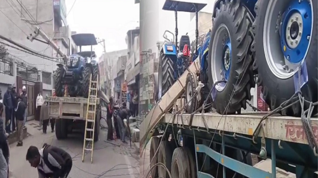 ਮੋਗਾ ਦੇ ਮੇਨ ਬਾਜ਼ਾਰ ਵਿਚ ਉਸ ਸਮੇਂ ਹੜਕੰਪ ਮਚ ਗਿਆ ਜਦੋਂ ਤਿੰਨ ਨੰਬਰ ਚੁੰਗੀ ਵੱਲੋਂ ਜਾਣ ਵਾਲੀ ਸੜਕ ‘ਤੇ ਸੋਨਾਲੀਕਾ ਟਰੈਕਟਰਾਂ ਨਾਲ ਲੱਦਿਆ ਇਕ ਘੋੜਾ ਟਰਾਲਾ ਬਿਜਲੀ ਦੀਆਂ ਤਾਰਾਂ ਤੇ ਖੰਭਿਆਂ ਦੀ ਚਪੇਟ ਵਿਚ ਆ ਗਿਆ। ਹਾਦਸੇ ਕਾਰਨਰ ਇਲਾਕੇ ਦੀ ਬਿਜਲੀ ਸਪਲਾਈ ਬੁਰੀ ਤਰ੍ਹਾਂ ਪ੍ਰਭਾਵਿਤ ਹੋ ਗਈ। ਜਾਣਕਾਰੀ ਮੁਤਾਬਕ ਘਟਨਾ ਬੀਤੀ ਰਾਤ ਲਗਭਗ 12 ਤੋਂ 1 ਵਜੇ ਦੀ ਦੱਸੀ ਜਾ ਰਹੀ ਹੈ। ਖਾਸ ਗੱਲ ਹੈ ਕਿ ਇਸੇ ਰਸਤੇ ਤੋਂ ਸਿਵਲ ਹਸਪਤਾਲ ਮੋਗਾ ਲਈ ਬਿਜਲੀ ਦੀ ਹੌਟ ਲਾਈਨ ਵੀ ਲੰਘਦੀ ਹੈ ਜੋ ਇਸ ਹਾਦਸੇ ਵਿਚ ਬੁਰੀ ਤਰ੍ਹਾਂ ਪ੍ਰਭਾਵਿਤ ਹੋ ਗਈ। ਹਾਦਸੇ ਦੇ ਬਾਅਦ ਤੋਂ ਹੀ ਇਲਾਕੇ ਦੀ ਬਿਜਲੀ ਸਪਲਾਈ ਪੂਰੀ ਤਰ੍ਹਾਂ ਬੰਦ ਹੈ।